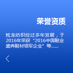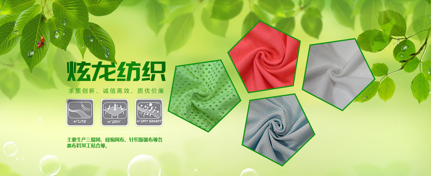 泉州市炫龍紡織科技有限公司位于中國福建晉江--中國鞋都,是一家集研發(fā)、生產、銷售為一體的紡織企業(yè)公司。主要生產:三層網、經編網布、針織服裝布、休閑時尚女裝網布、鞋用各類BK布、拉毛布、大小提花布、賈卡提花、3D飛織、各類布料加工貼合等。 公司秉承“求質創(chuàng)新、誠信高效、質優(yōu)價廉”的經營理念為宗旨,竭誠為廣大海內外客戶求創(chuàng)一流的服務及優(yōu)質的品質,歡迎海內外的客戶供樣、定制及洽談合作。